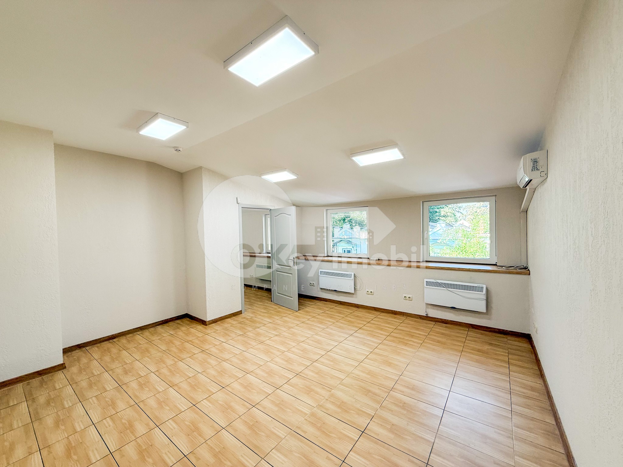 Spațiul are o suprafață totală de 88 mp și este divizat în 2 nivele: 2 oficii, bucătărie, coridor, bloc sanitar.