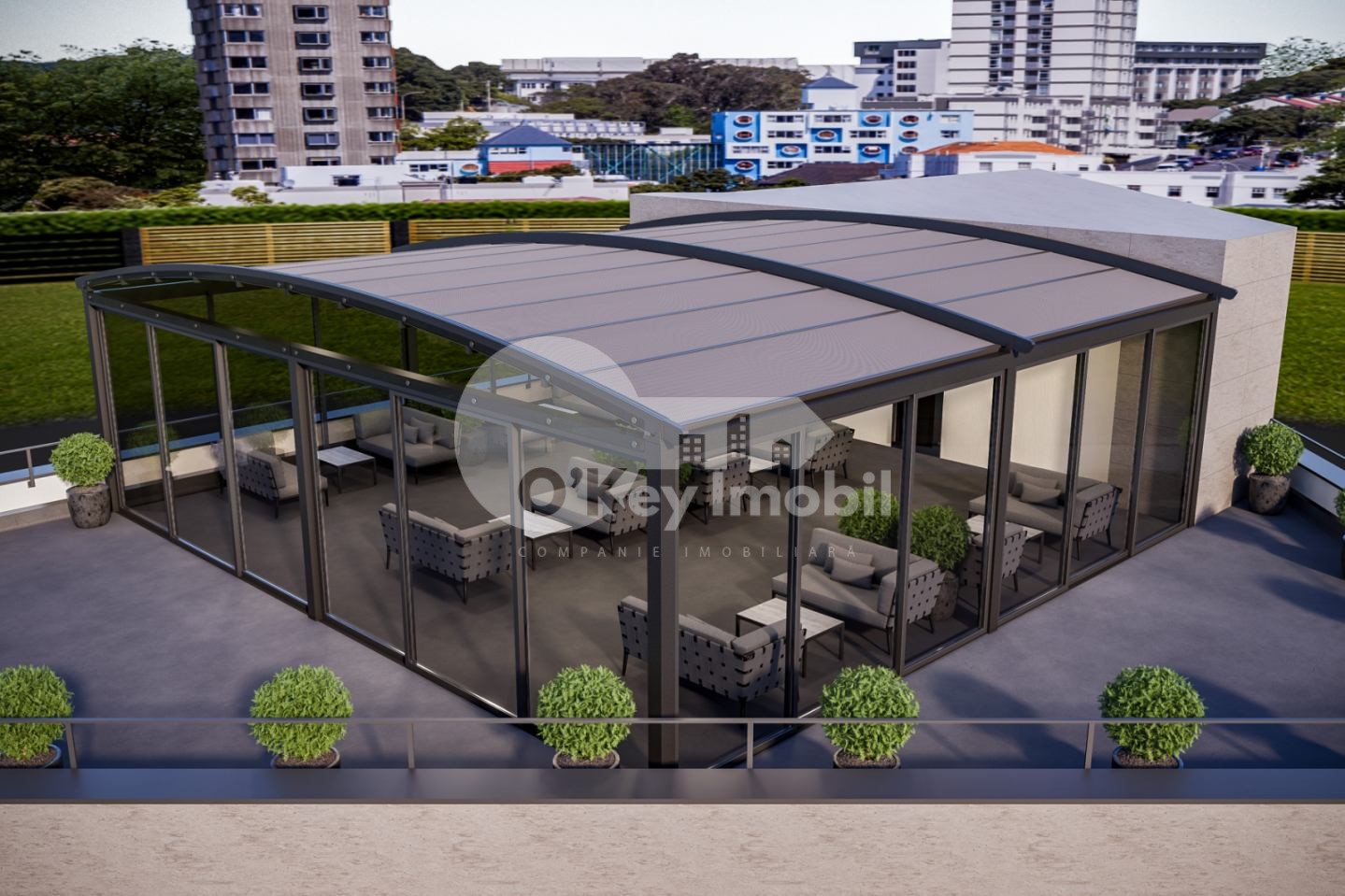Unul dintre cele mai mari beneficii ale acestui spațiu este priveliștea spectaculoasă asupra întregului oraș, oferind o atmosferă unică pentru clienți.
