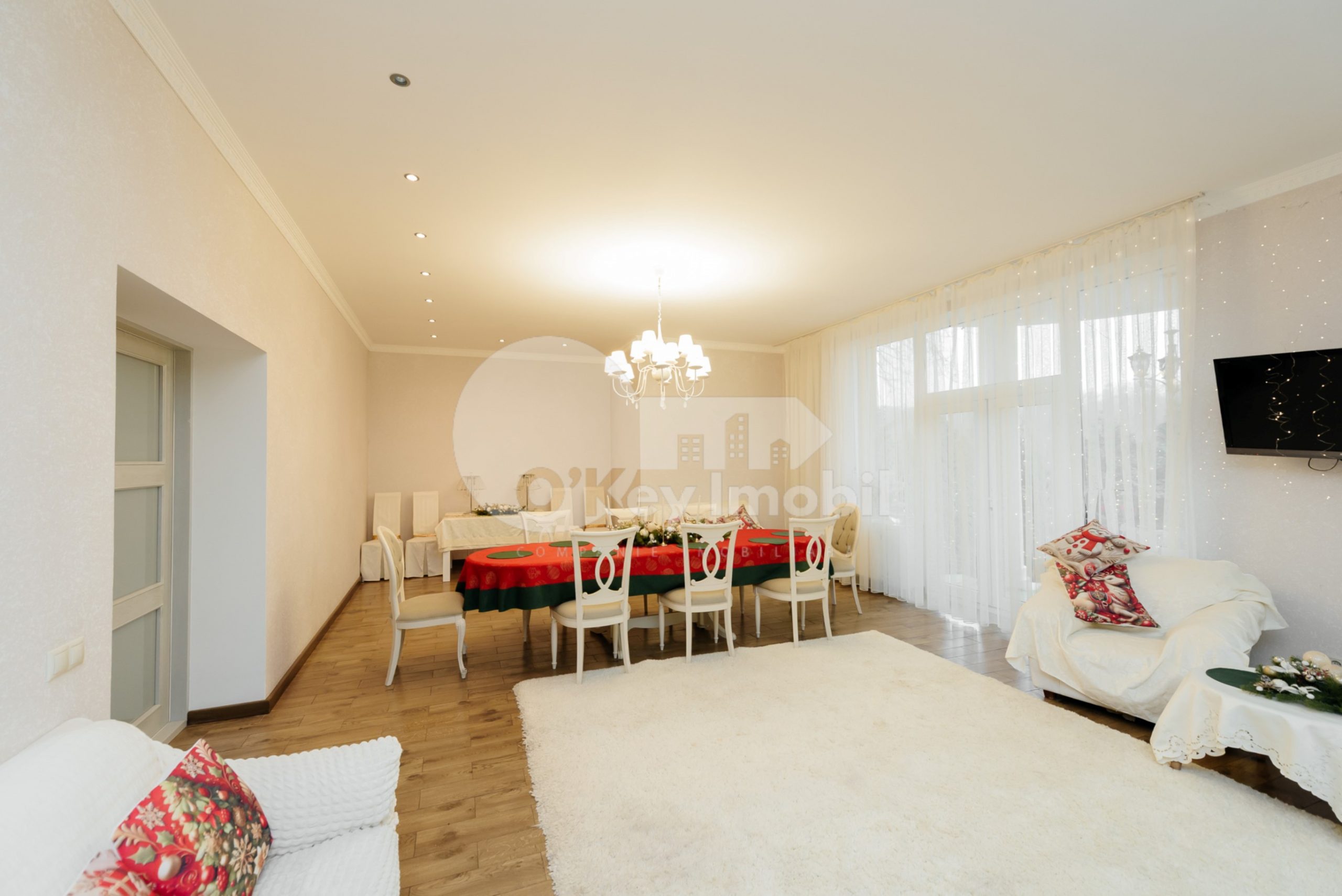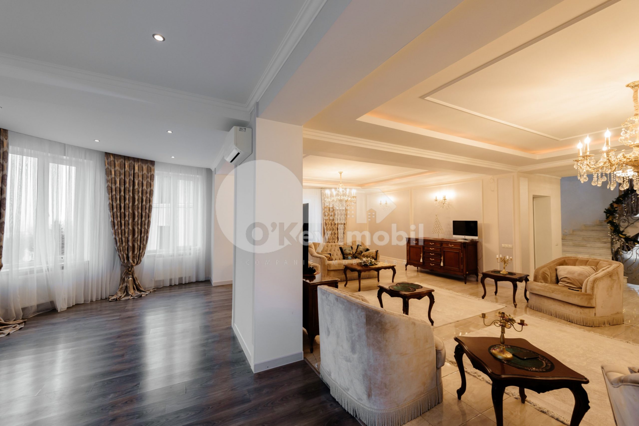 Общая площадь дома составляет 450 м², расположен на участке площадью 9 соток.