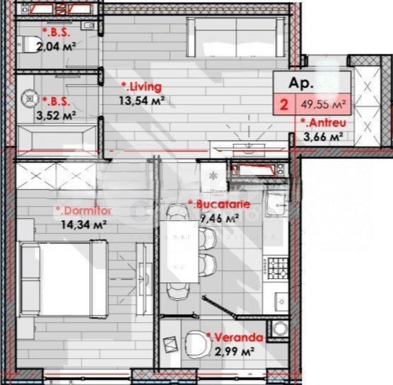 Площадь квартиры составляет 49 кв.м, находится на 3 этаже из 9.